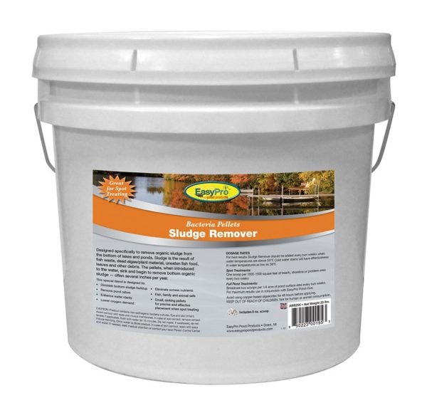 Sludge Remover bacteria is designed specifically to remove organic sludge from the bottom of lakes and ponds. Sludge is the result of fish waste, dead algae or plant material, uneaten fish food, leaves and other debris. The pellets and blocks, when introduced to the water, sink, dissolve and begin to remove bottom organic sludge — often several inches per year.